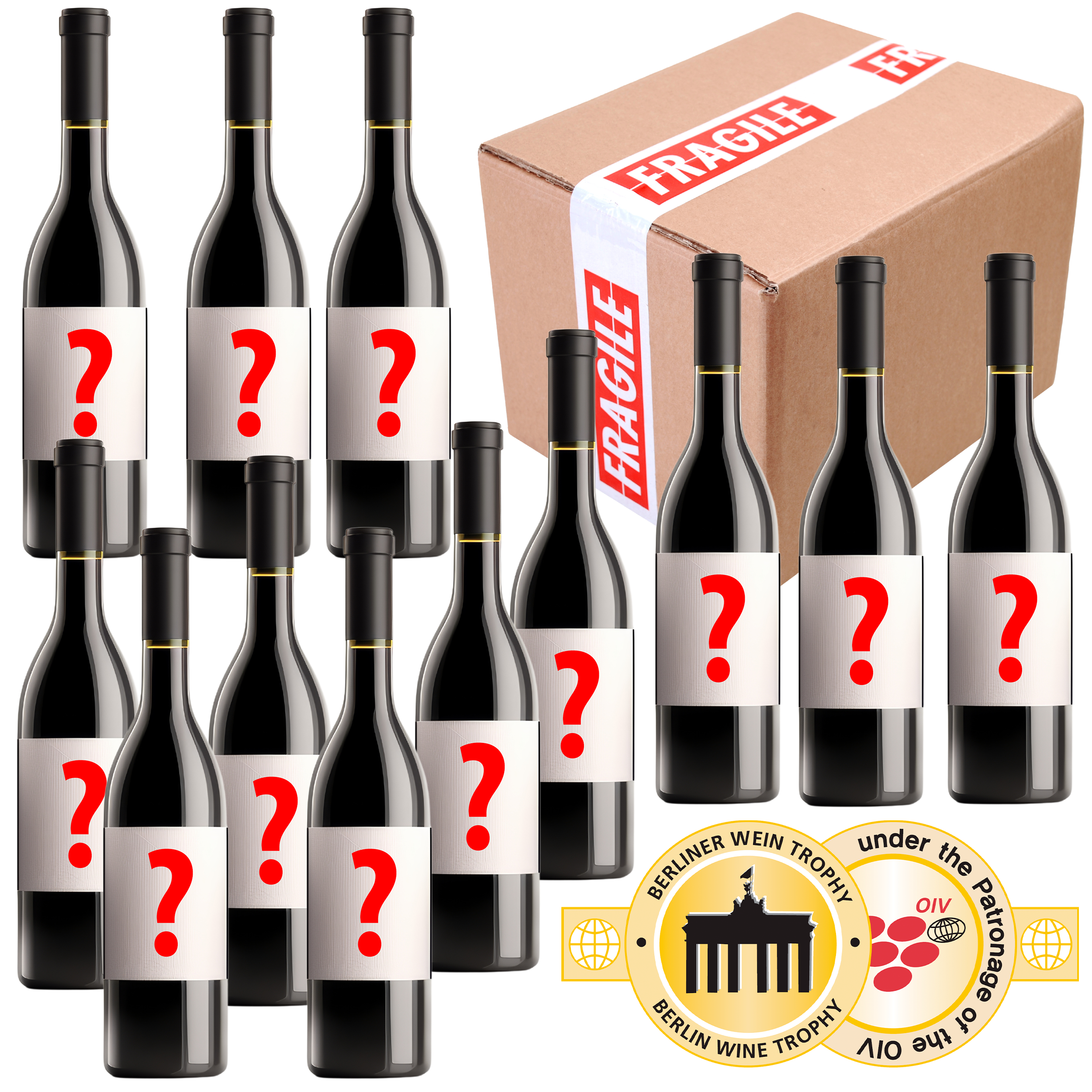 Die Überraschungskiste „Weiß“ enthält 12 Flaschen unterschiedlichster Weißweine aus den verschiedenen Teilnehmerländern. Da es sich um Weine der internationalen Wettbewerbe Berliner Wine Trophy, Asia Wine Trophy, Portugal Wine Trophy aus den letzten Jahren handelt, kann die DWM keine Garantie für die Qualität und Güte dieser Weine übernehmen. Die DWM garantiert, dass der Gesamtverkaufswert der Weine über dem liegt, der für die Überraschungskiste ausgewiesen wurde. Der Preis errechnet sich nach den von den einzelnen Teilnehmern bei der Anmeldung angegebenen Verkaufspreise. In Ausnahmefällen können sich auch alkoholreduzierte und alkoholfreie Weine in den Kisten befinden.